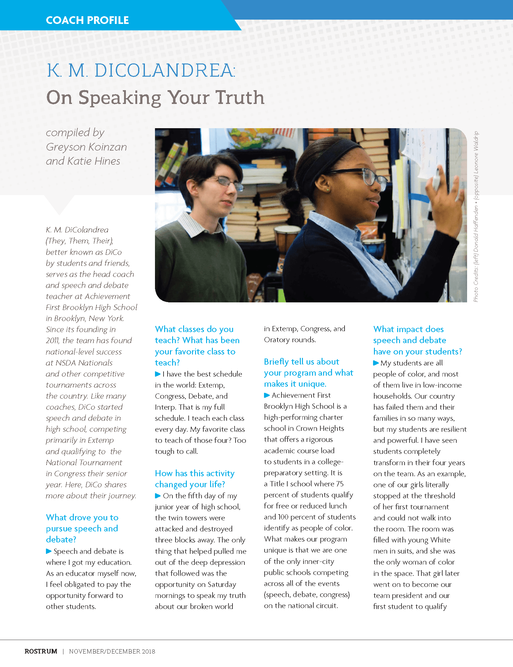 The National Speech and Debate Association • Coach Profile (NOVEMBER/DECEMBER 2018)